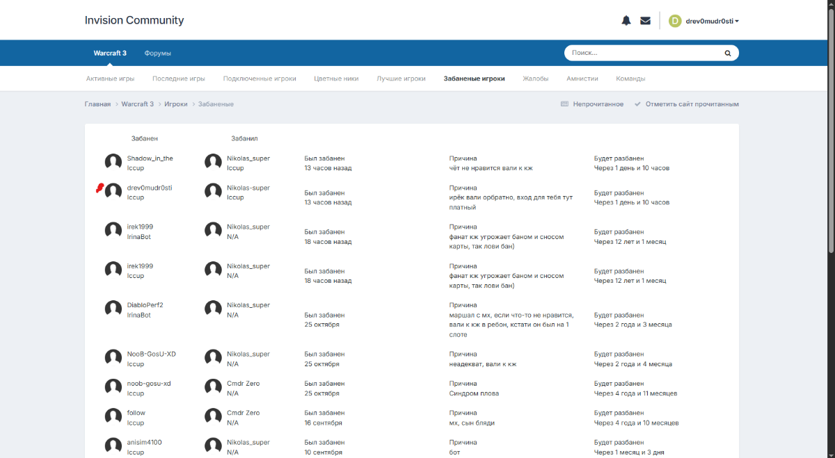 Амнистия игрока drev0mudr0sti@Iccup